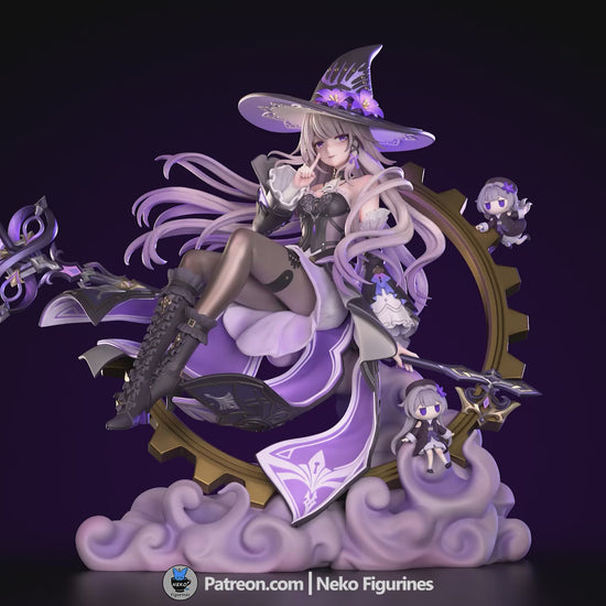A detailed resin collectible figure of Herta from Honkai Star Rail.
