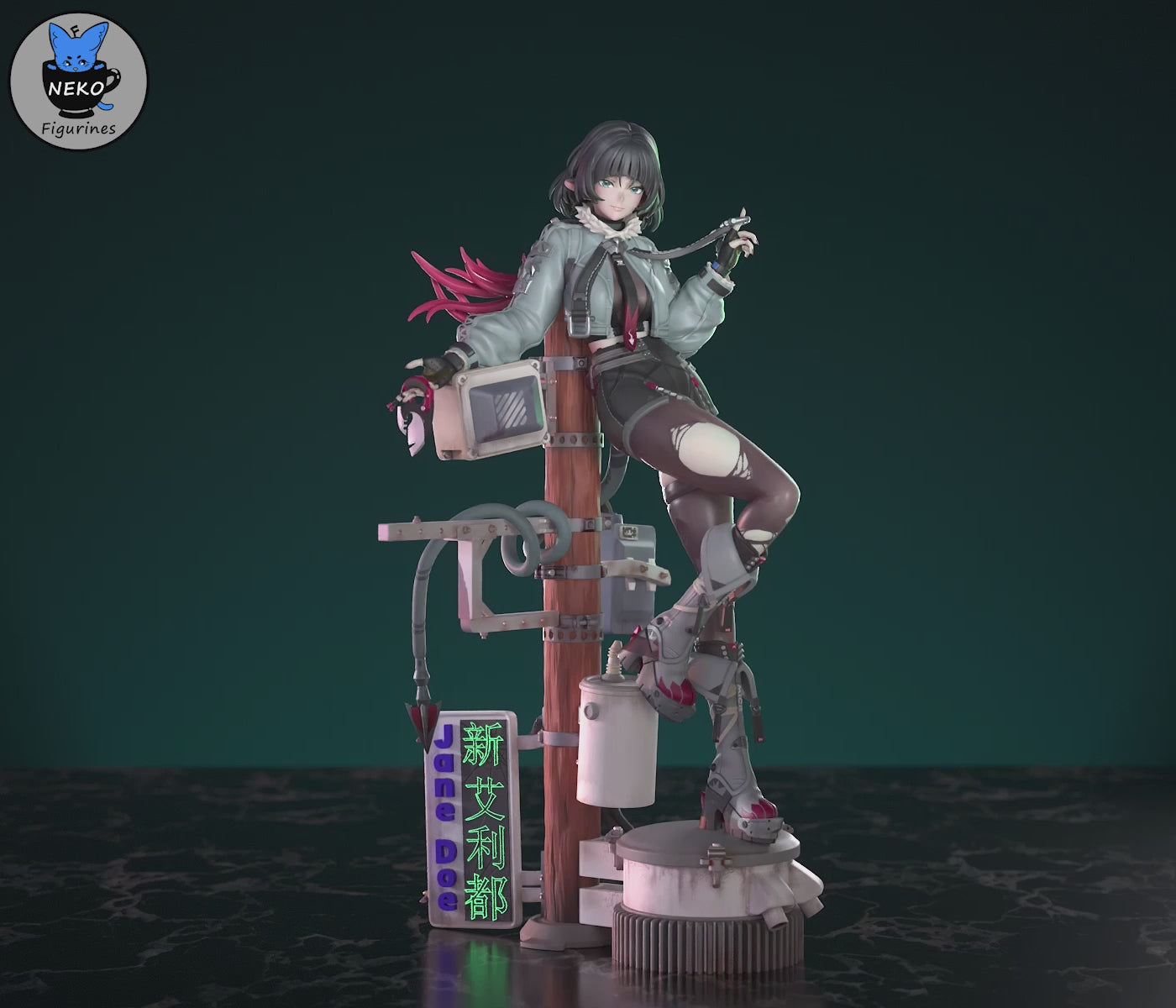 A detailed handcrafted resin collectible figure of Jane Doe from Zenless Zone Zero.