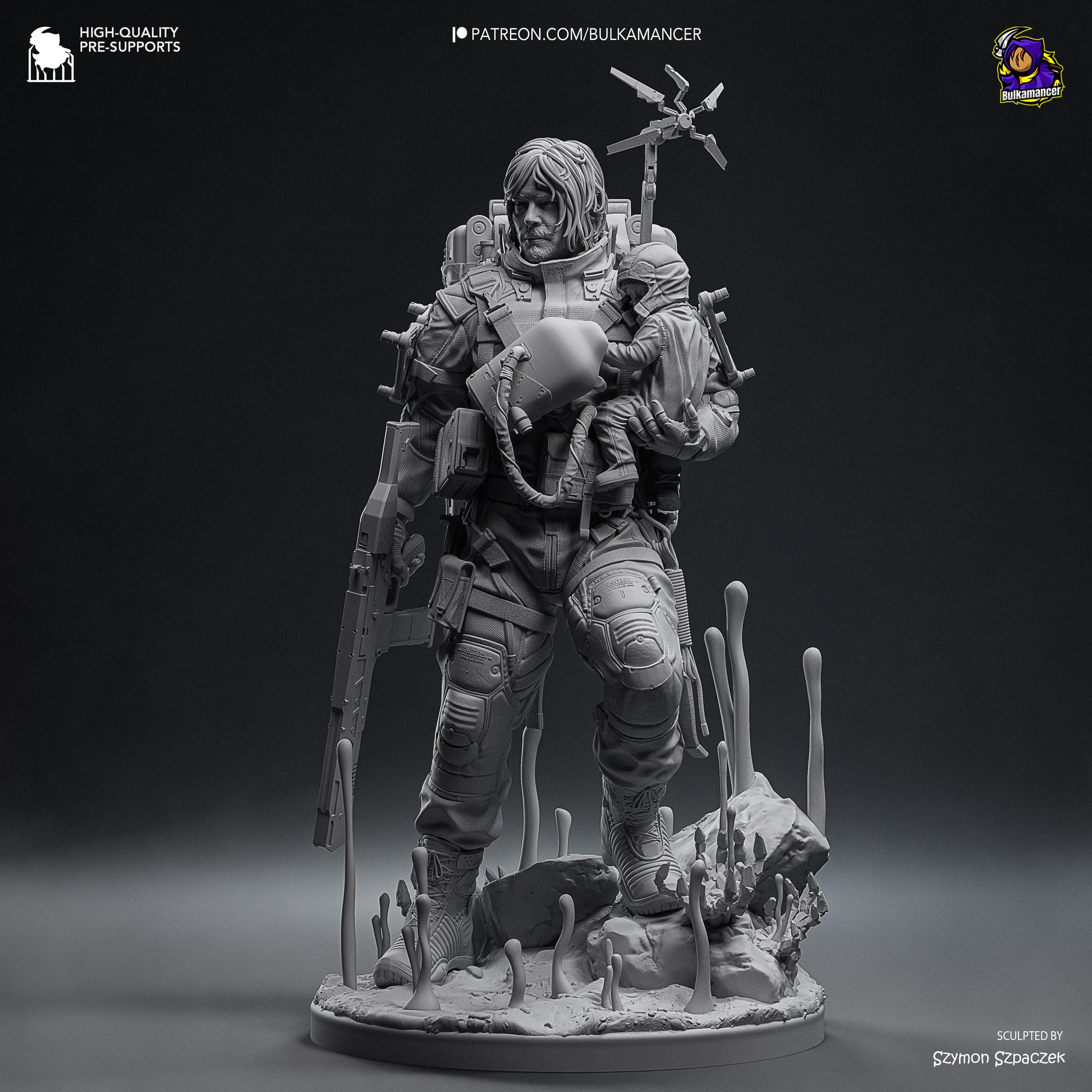 A detailed resin collectible figure of Sam from Death Stranding 2.