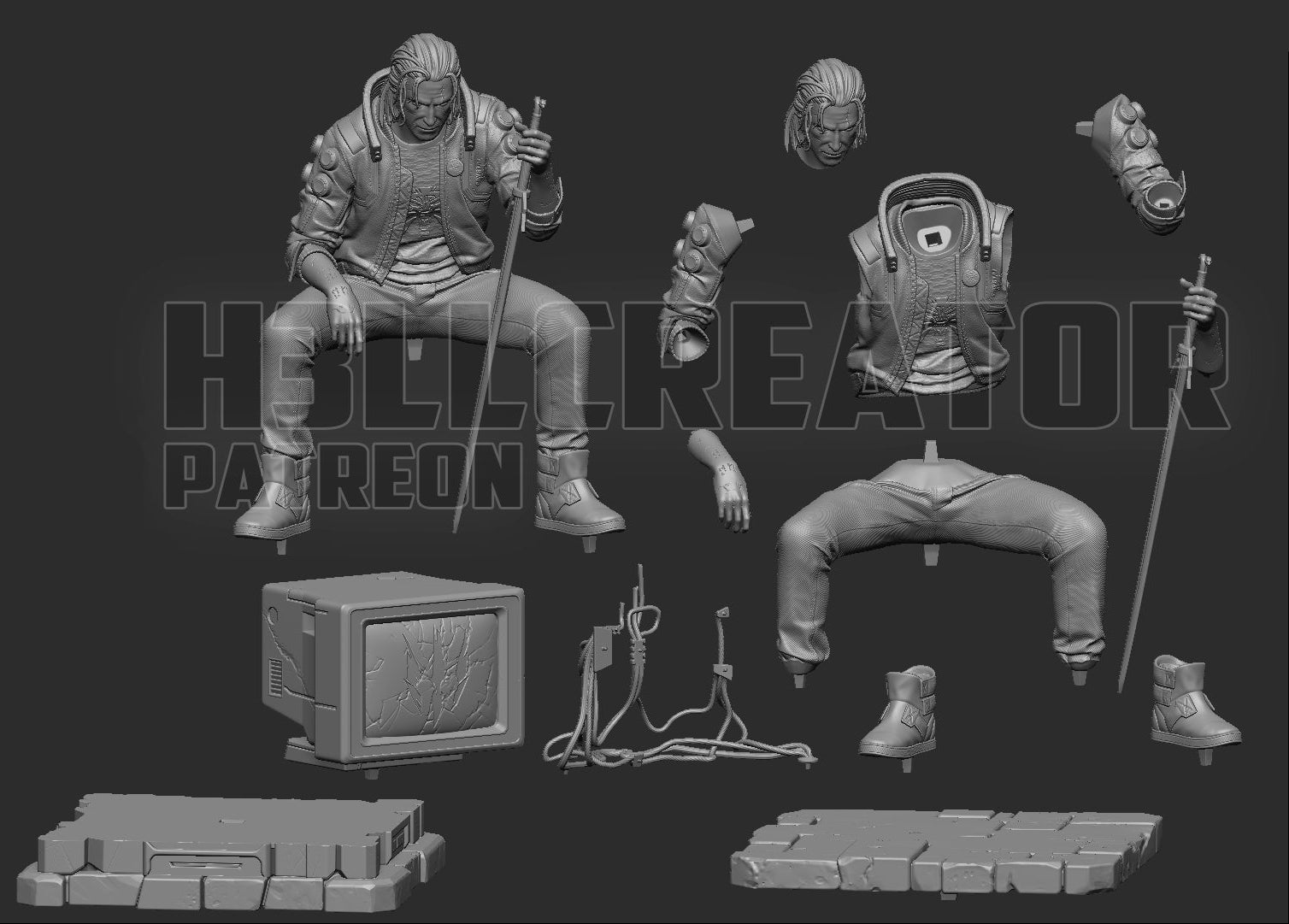 A highly detailed handcrafted resin figure of Silverronin (Geralt) from Cyberpunk 2077-The Witcher.