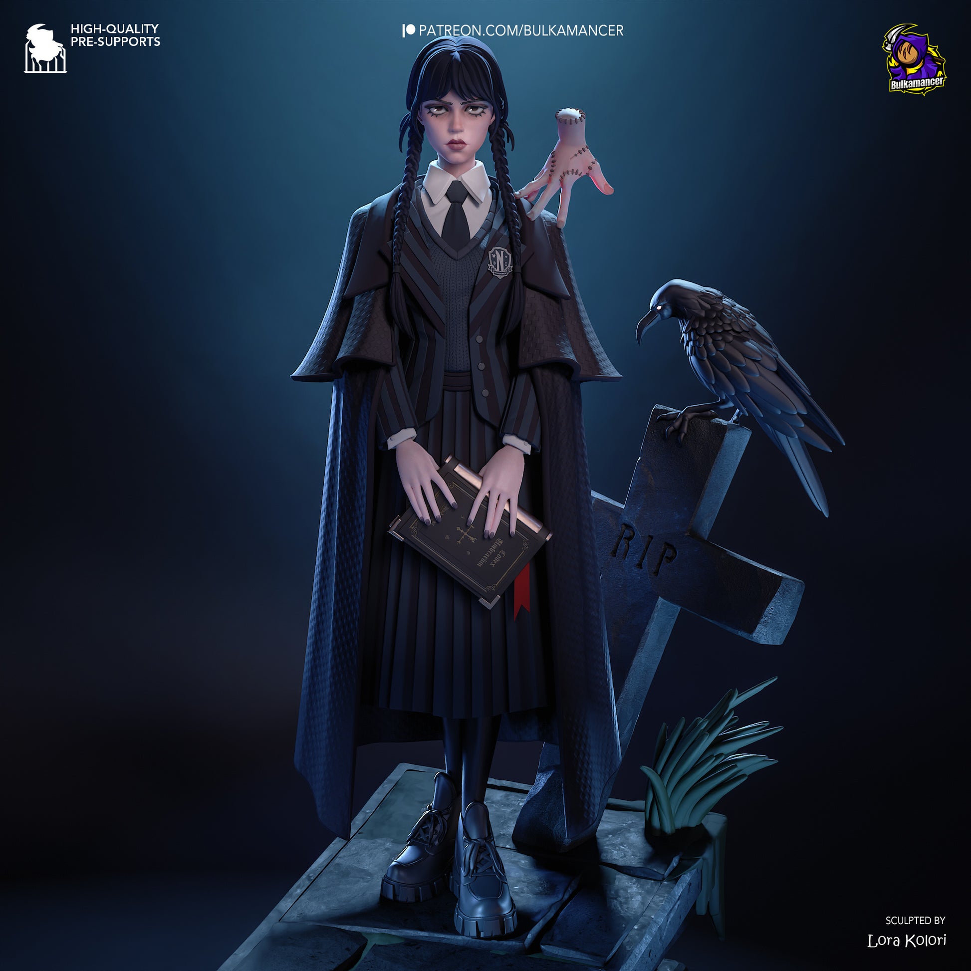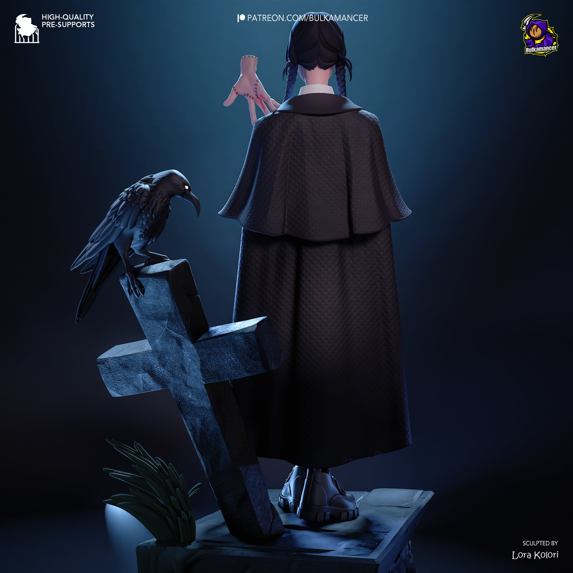 A detailed resin collectible figure of Wednesday from Wednesday series.