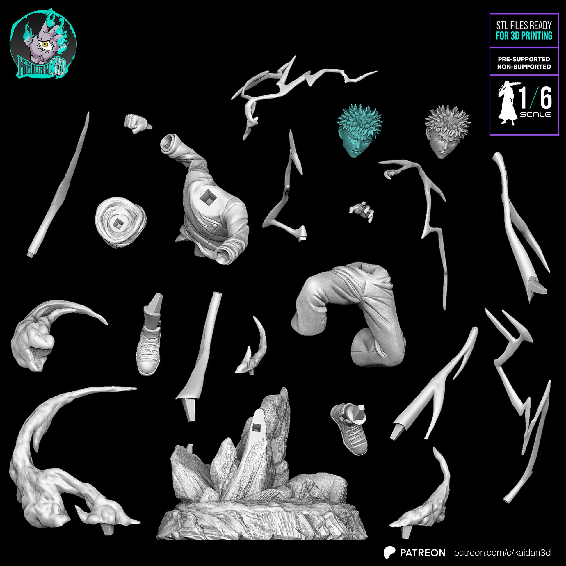 A detailed handcrafted resin collectible figure of Yuji Itadori from Jujutsu Kaisen.